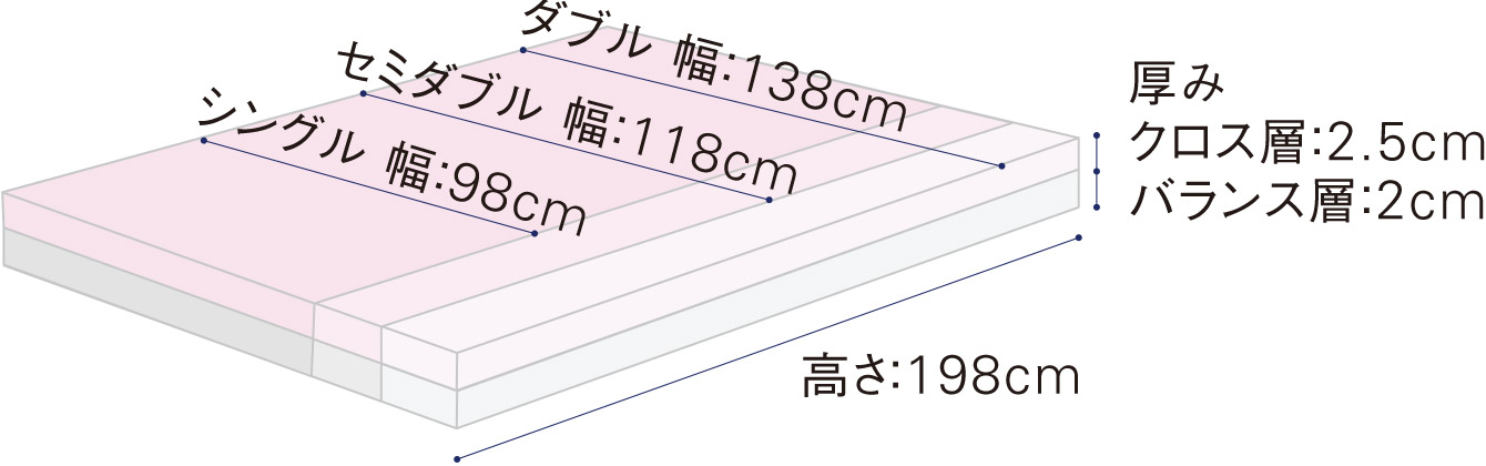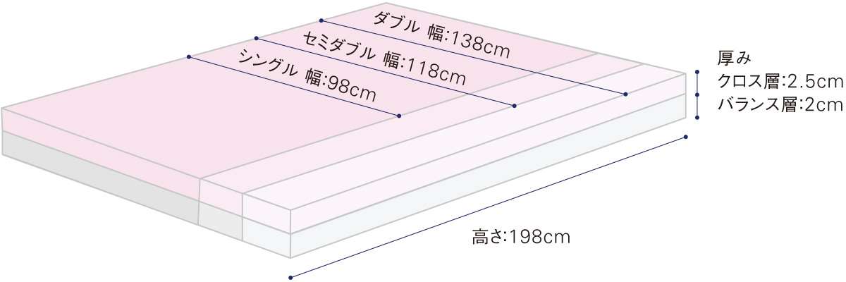 W138cm×H198cm×D4.5cm(クロス層2.5cm/バランス層2cm)